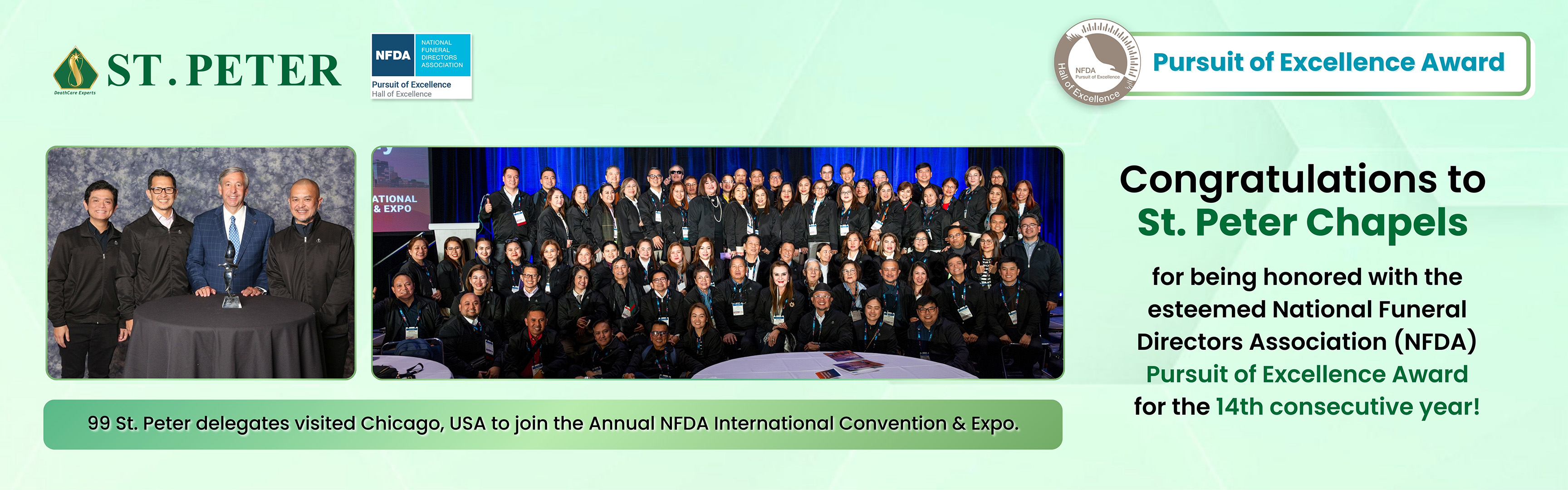 The St. Peter Group of Companies has once again brought pride to the Philippine DeathCare Industry after being honored with the Pursuit of Excellence Award at the 2025 National Funeral Directors Association (NFDA) International Convention and Expo, held in Chicago, Illinois, USA.