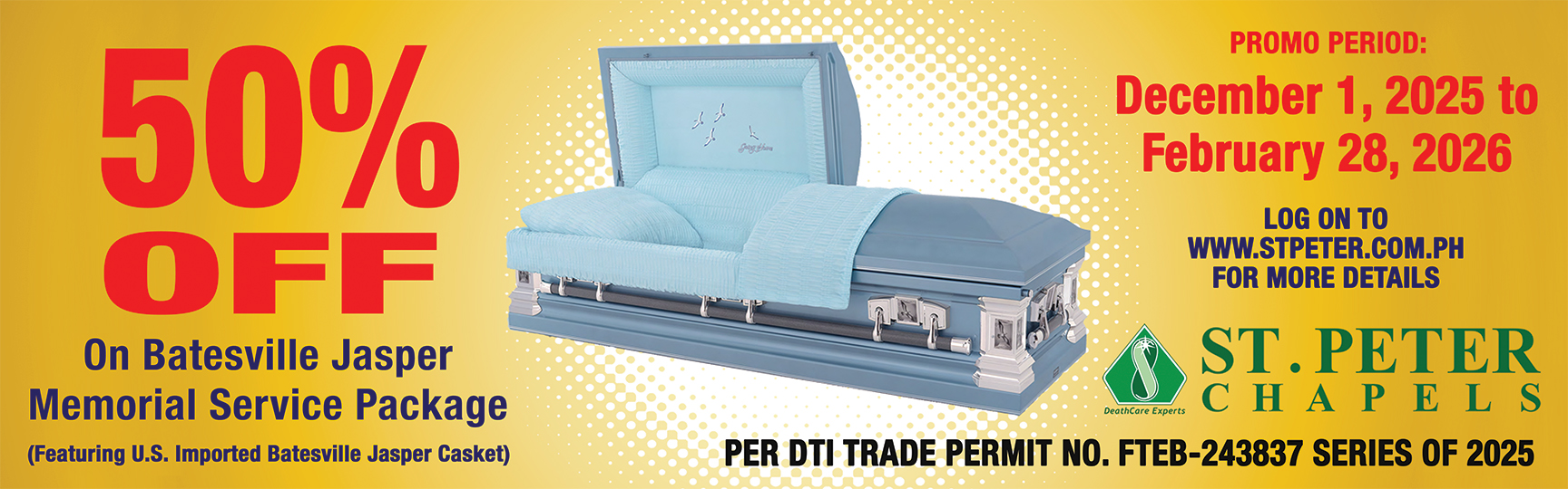 11. The 50% discount on Batesville Jasper Casket Memorial Services may be availed in selected St. Peter Chapels nationwide (please see list of participating St. Peter Chapels Nationwide).