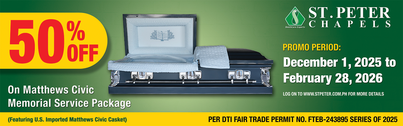 11. The 50% discount on Matthews Civic Casket Memorial Services may be availed in selected St. Peter Chapels nationwide (please see list of participating St. Peter Chapels Nationwide).